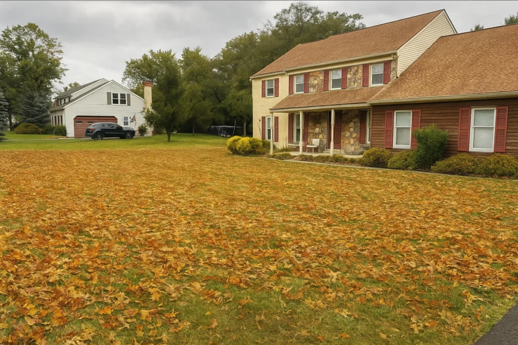 Your estimate reflects leaf volume, tree count, access, slopes, and disposal choice. We offer four efficient paths: (1) mulch-mow light layers into turf, (2) blow leaves curbside for municipal collection, (3) create an on-property pile in a designated area, or (4) haul away all material. We can also include gutter cleaning and drain/grate clearing so water flows away from the home. Please ensure gates are unlocked and pets are secured. Township rules vary for collection dates and bagging—if curbside pickup isn’t available or is delayed, we can pivot to haul-away. Our goal is a clean, safe property now and a stronger lawn when spring returns.